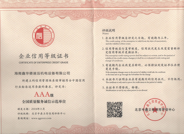 企業信用等級證書