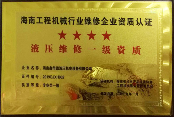 液壓維修一級資質臺匾